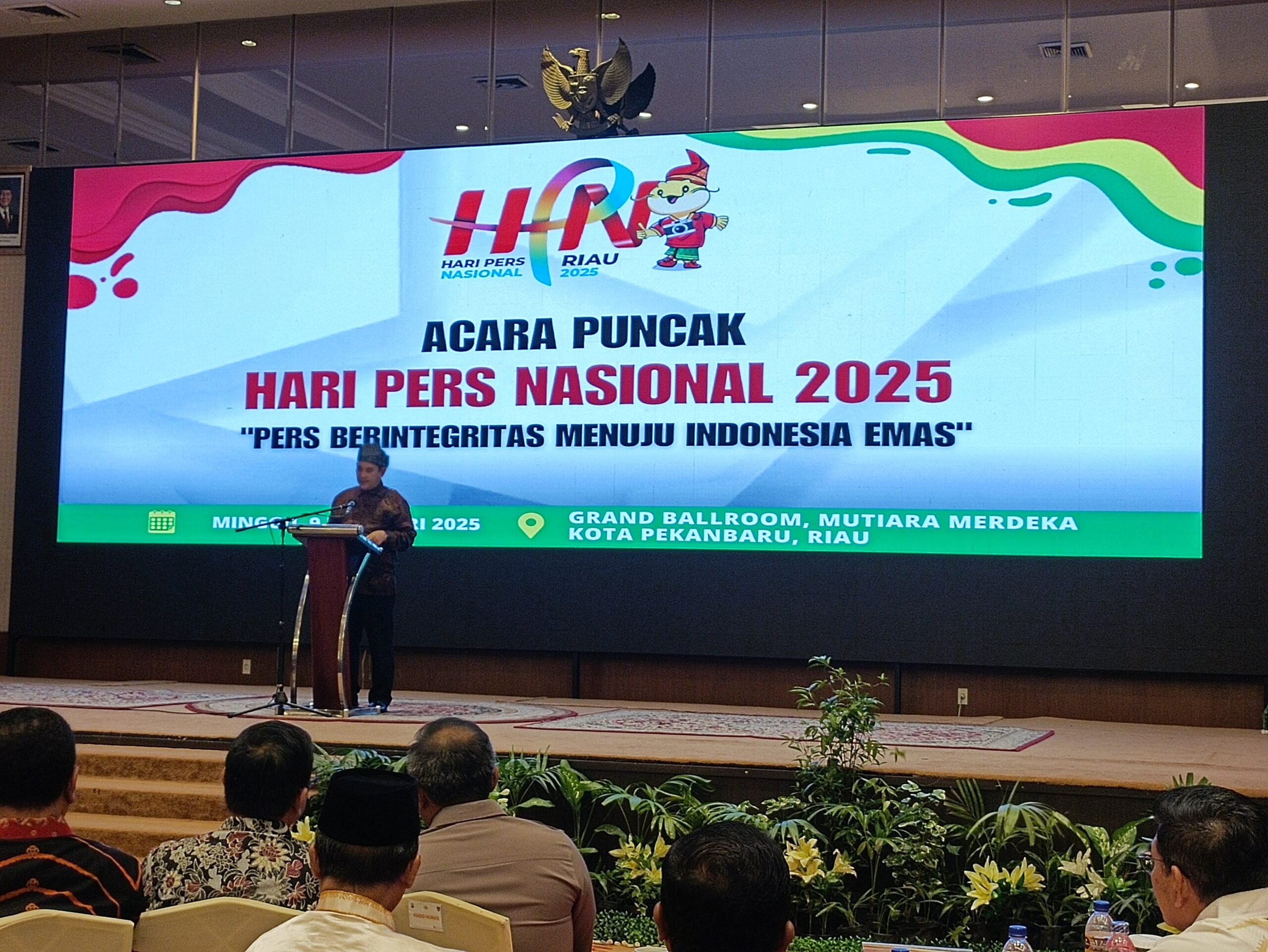 Acara puncak HPN 2025 yang mengusung tema Pers Berintegritas Menuju Indonesia Emas berlangsung megah dihadiri sejumlah berbagai tokoh penting, termasuk Ketua PWI Pusat Zulmansyah Sekedang, Kadiv Humas Polri, Kapolda Riau, Pj Gubernur Riau, Pj Bupati/Walikota, Ketua dan Wakil Ketua DPRD Provinsi Riau, Ketua PWI seluruh Indonesia, serta para tokoh masyarakat.
